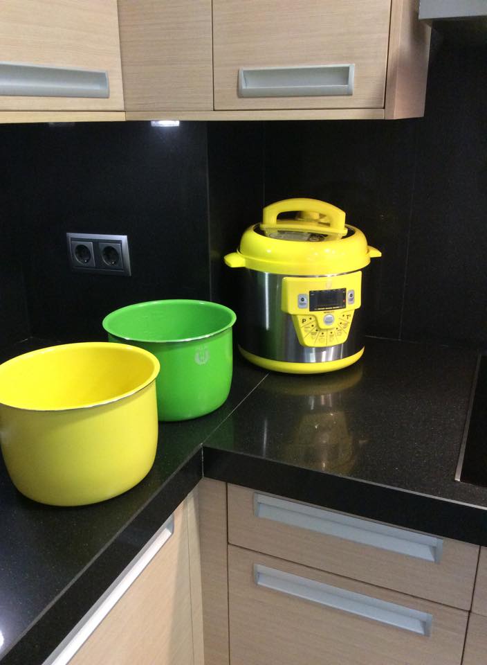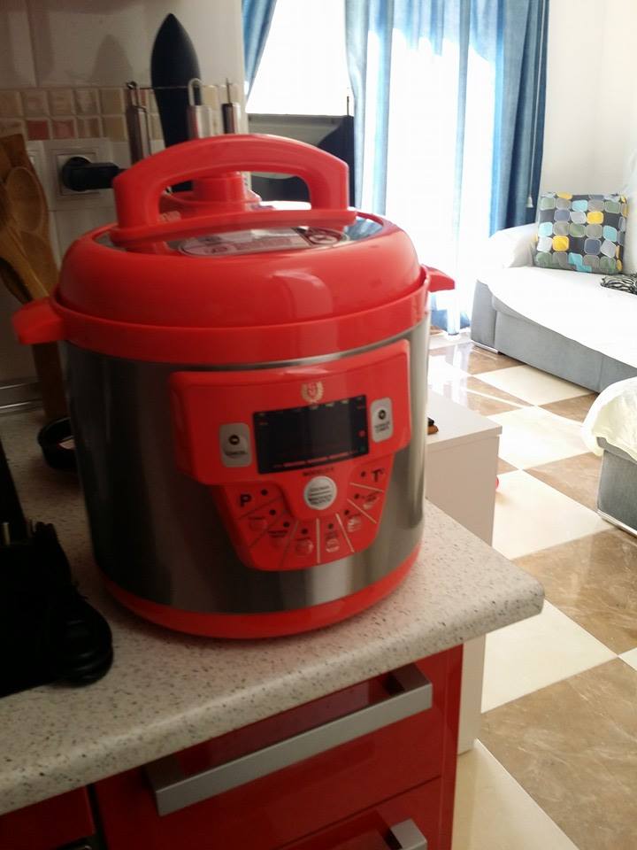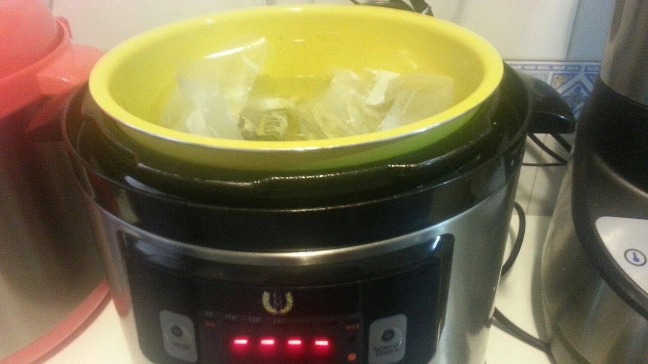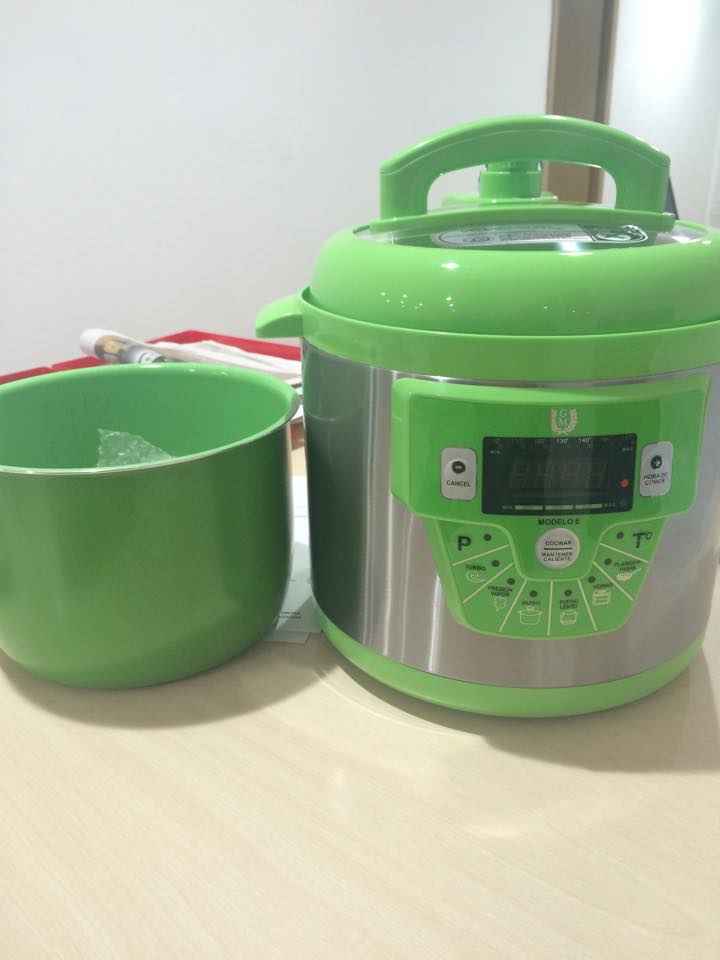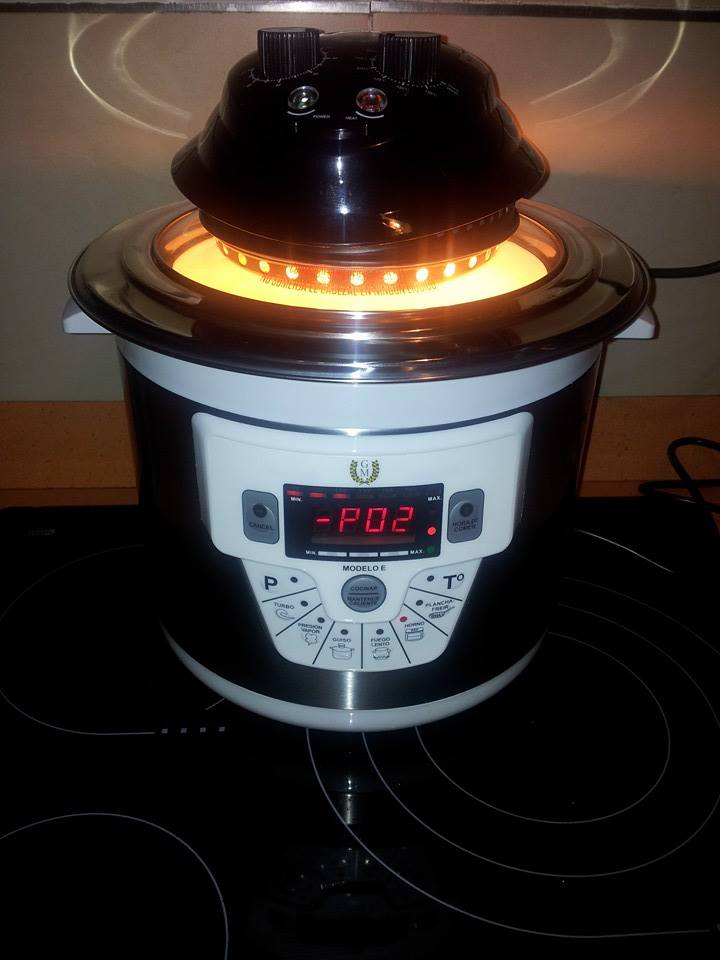 - Introducimos la cubeta en la olla y programamos en GM E Menu Horno, 130º durante 35 minutos, y en la GM D Menu Horno 35 minutos