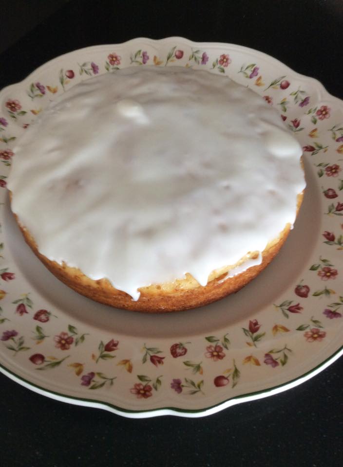 - Cuanto el bizcocho esté frío, batimos los ingredientes para el glaseado y lo vertemos sobre el bizcocho
