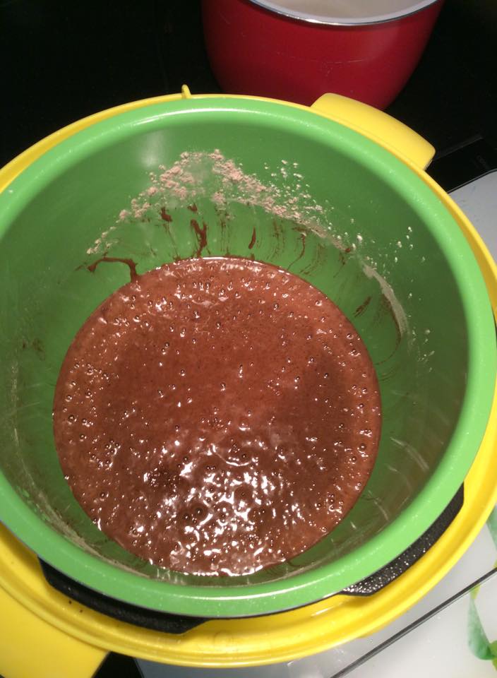 - Pon el chocolate de postres a fundir en el microondas…ponlo a intervalos muy cortos, no mas de 30 segundos y a baja potencia. Ve sacando el bol, mezclas con una cuchara de madera y cuando este disuelto lo retiras.