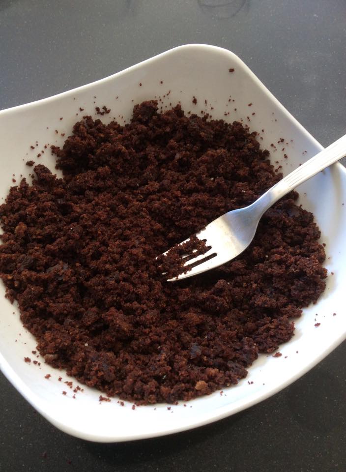 - Pon los restos de bizcocho o magdalenas en un bol y con un tenedor desmigalo