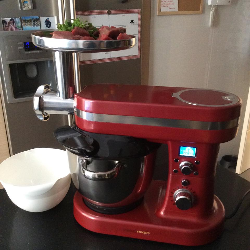 - Colocar en la cubeta todos los ingredientes en la cubeta, meter el cestillo con la carne dentro y programar: