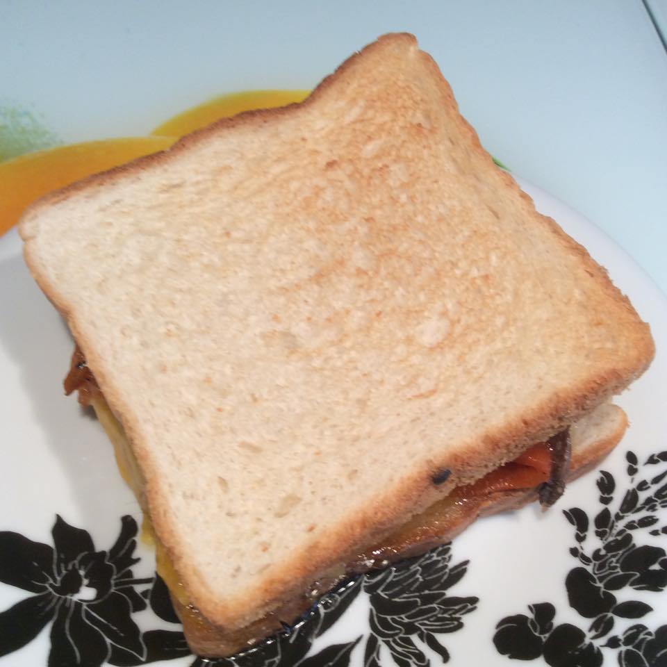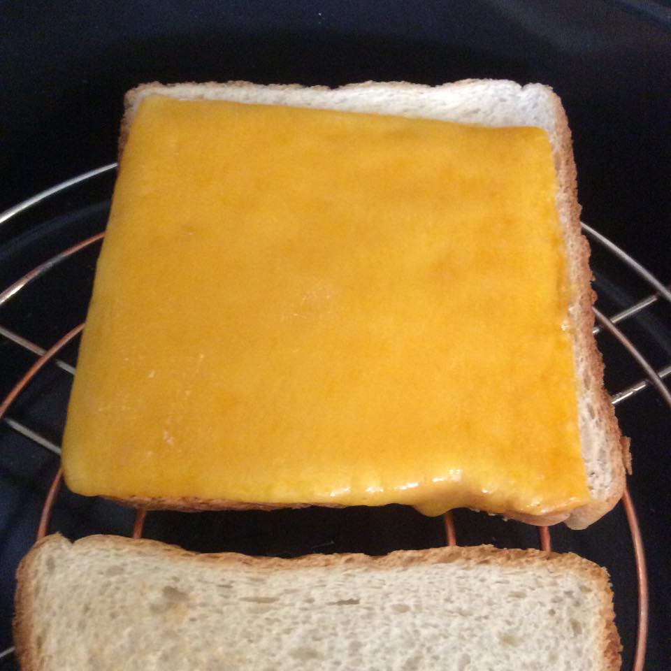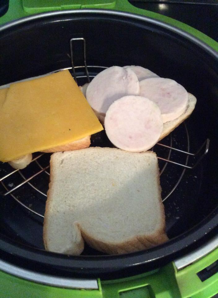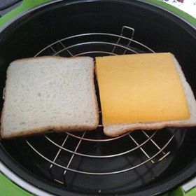 - Una vez que el queso comienza a derretirse, retiro la rebanada de pan y agrego a la Cecofry la cuarta y última rebanada para que se tueste, y comienzo a montar el sándwich: